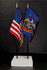 This high quality State and US miniature flag desk set is perfect for office, classroom and table decorations. Flags are made of silk-like rayon, measure 4"x6" and are attached to 10" black plastic staff with a gold spear top. All edges are hem stitched. Flag stand measures 4" long, 2.5" wide and stands .75" high.