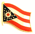 Ohio single flag lapel pins depict one waving flag. Each Ohio flag pin measures approximately 1" x 3/4" or 24 mm x 16 mm and has an all metal lacquered design with clutch pin.