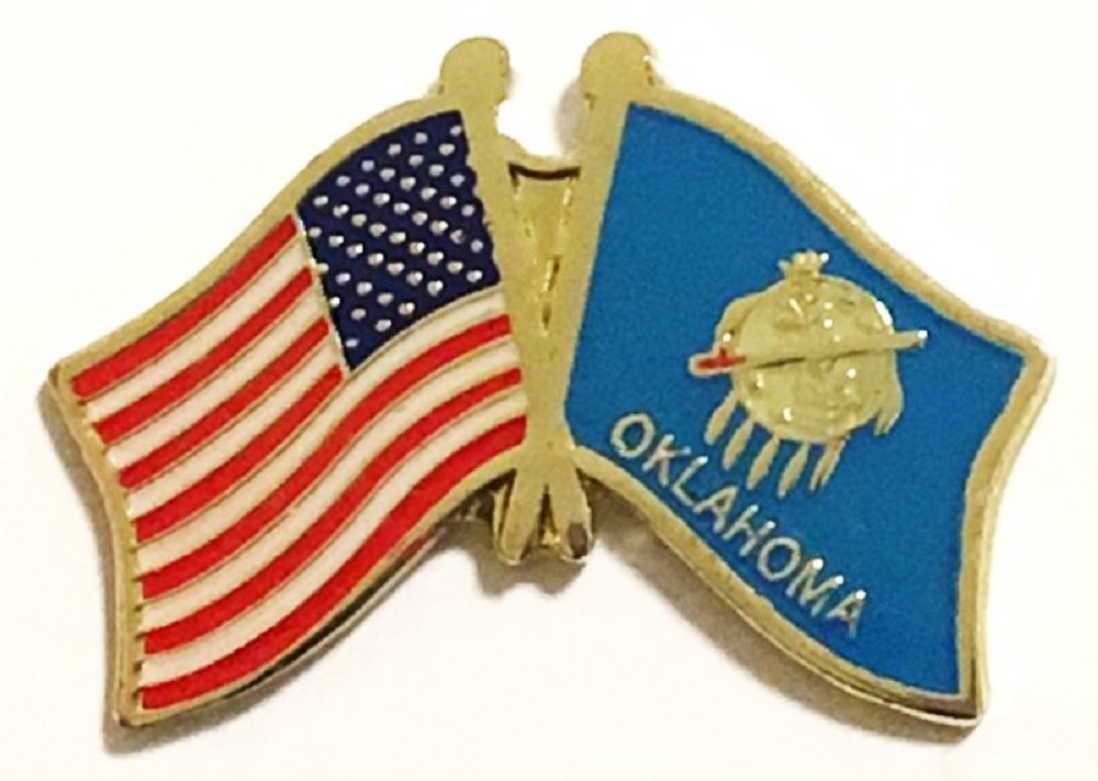 Each Oklahoma flag friendship lapel pin depicts the US flag on the left and the Oklahoma flag on the right. Each pin measures approximately 1" x 3/4" or 28mm x 18.3mm and is the same quality as the single flag lapel pins.
