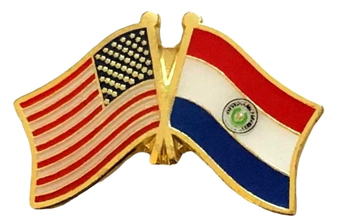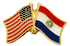 Each Paraguay flag friendship lapel pin depicts the US flag on the left along with the Paraguay flag on the right. Each pin measures approximately 1" x 3/4" or 28 mm x 18.3 mm and is the same quality as the single flag lapel pins.