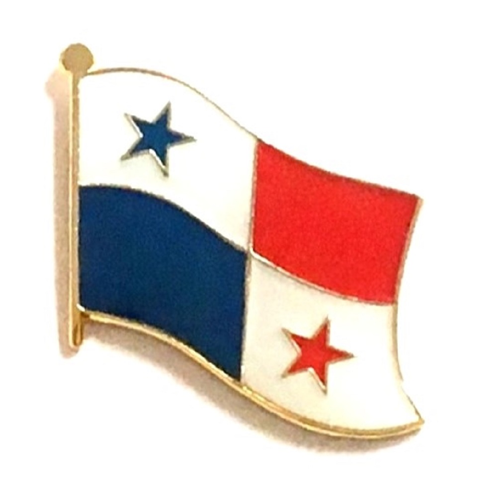 Panama flag pin measures approximately 1 inch; x 3/4 inch; or 24 mm x 16 mm and has an all metal lacquered design with clutch pin.