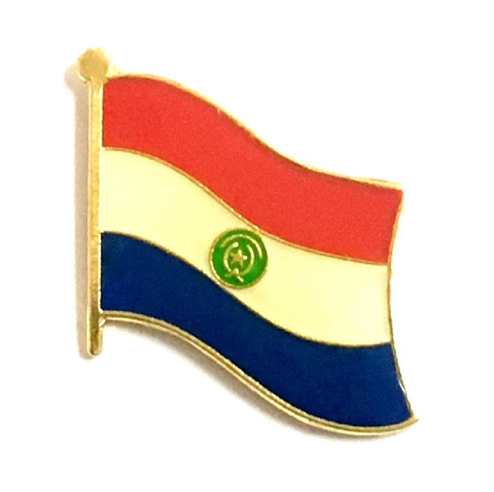 Paraguay flag pin measures approximately 1 inch; x 3/4 inch; or 24 mm x 16 mm and has an all metal lacquered design with clutch pin.