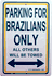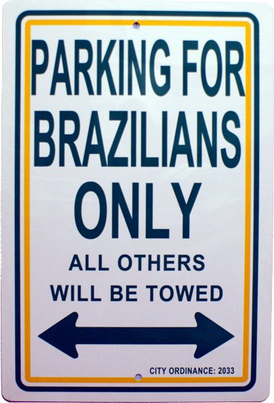 Brazilians only parking signs measure 8" x 12" and are made of