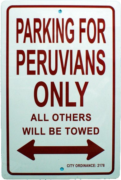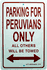 Peruvians only parking signs measure 8" x 12" and are made of