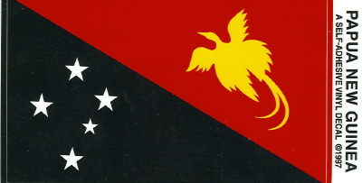 Special closeout sale. Buy 25 or more Papua New Guinea vinyl waterproof flag decals and the price is only 40 cents each.