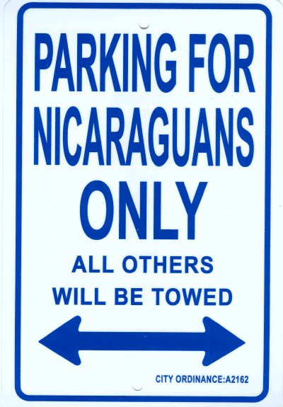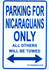 Nicaraguans only parking signs measure 8" x 12" and are made of heavy duty plastic with two mounting holes. These signs make great gifts.
