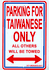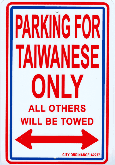 Taiwanese only parking signs measure 8" x 12" and are made of