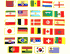 Flags contained in this set are Australia, China, Japan, Philippines, South Korea, Vietnam, Morocco, Nigeria, South Africa, Zambia, Canada, Costa Rica, Haiti, Jamaica, Panama, United States, Argentina, Brazil, Colombia, New Zealand, Denmark, England, France, Germany, Italy, Netherlands, Norway, Portugal, Ireland, Spain, Sweden and Switzerland