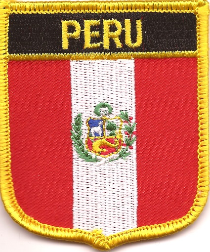 Peruvian flag shield patches are fully embroidered and measure 2.25″ x 2.5″. Each patch is trimmed in gold and can be ironed or sewn on.