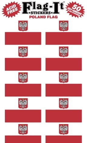 Includes 50 self-adhesive Poland flag stickers