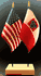 Elevate your workspace with our Poland with Eagle and American miniature flag desk set! These silk-like rayon flags, measuring 4"x6", are attached to a 10" black plastic staff and finished with a gold spear top. Perfect for office, classroom, or table decor. Each set comes with a 4" long white flag stand for added display options.