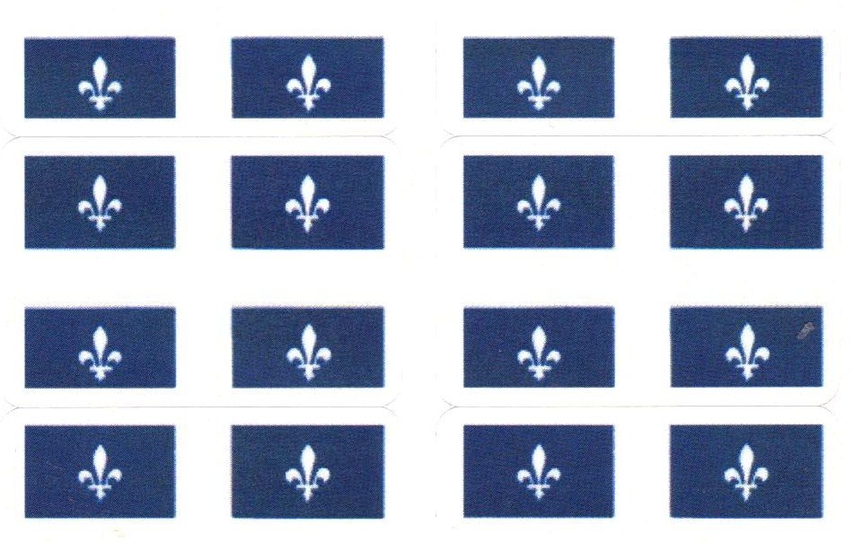 Quebec flag stickers are now available in sheets of 50 stickers per page. Each sticker measures 1" x 1 1/2" and is printed on heavy label paper stock.