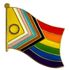 Pride Progress flag lapel pins are made of die struck metal. They measure approximately 1" x 3/4" or 24mm x 16mm; have a colored enamel fill, gold plating and epoxy dome finish. Each pin has a butterfly/military clutch and is individually poly bagged.