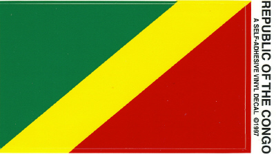 Special closeout sale. Buy 25 or more Republic Of The Congo vinyl waterproof flag decals and the price is only 40 cents each.