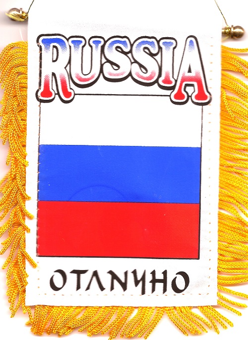 Russian car windshield, window or mirror mini banner flags measure 3 1/2" x 5" and are great ways to show your heritage. Each Russian flag has a gold fringe with a string for hanging over your car mirror, and a suction cup.