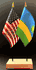 Elevate your workspace with our Rwanda and American miniature flag desk set! These silk-like rayon flags, measuring 4"x6", are attached to a 10" black plastic staff and finished with a gold spear top. Perfect for office, classroom, or table decor. Each set comes with a 4" long white flag stand for added display options.