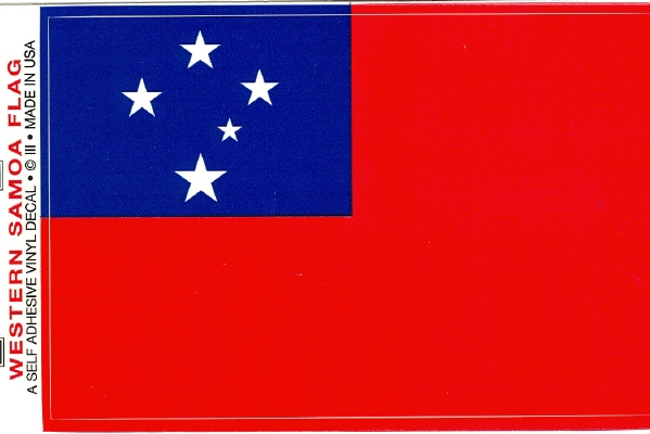 Samoa vinyl flag decal sticker measures 3 1/2" x 5". Each top quality decal is self adhesive, waterproof and sticks to any smooth surface.