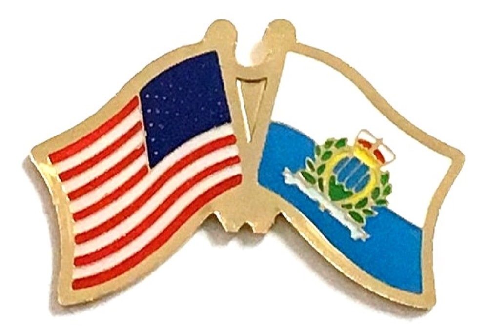 Each San Marino flag friendship lapel pin depicts the US flag on the left along with the San Marino flag on the right. Each pin measures approximately 1" x 3/4" or 28 mm x 18.3 mm and is the same quality as the single flag lapel pins.