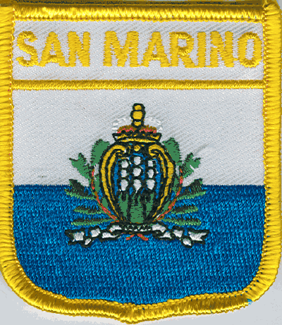 San Marino flag shield patches are fully embroidered and measure 2.25″ x 2.5″. Each patch is trimmed in gold and can be ironed or sewn on.