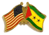 Each Sao Tome & Principe flag friendship lapel pin depicts the US flag on the left along with the Sao Tome & Principe flag on the right. Each pin measures approximately 1" x 3/4" or 28 mm x 18.3 mm and is the same quality as the single flag lapel pins.