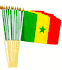 12" x 18" Senegal stick flags are great for parades, sporting events, rallies and special event decorations. The flags are made of polyester with the design crisp on both sides of the flag and are sold in packs of 12. All four sides of the flag are stitched and each flag is mounted with a pole hem to a 24" wood staff with a gold spear top.