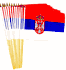 12" x 18" Serbia stick flags are great for parades, sporting events, rallies and special event decorations. The flags are made of polyester with the design crisp on both sides of the flag and are sold in packs of 12. All four sides of the flag are stitched and each flag is mounted with a pole hem to a 24" wood staff with a gold spear top.