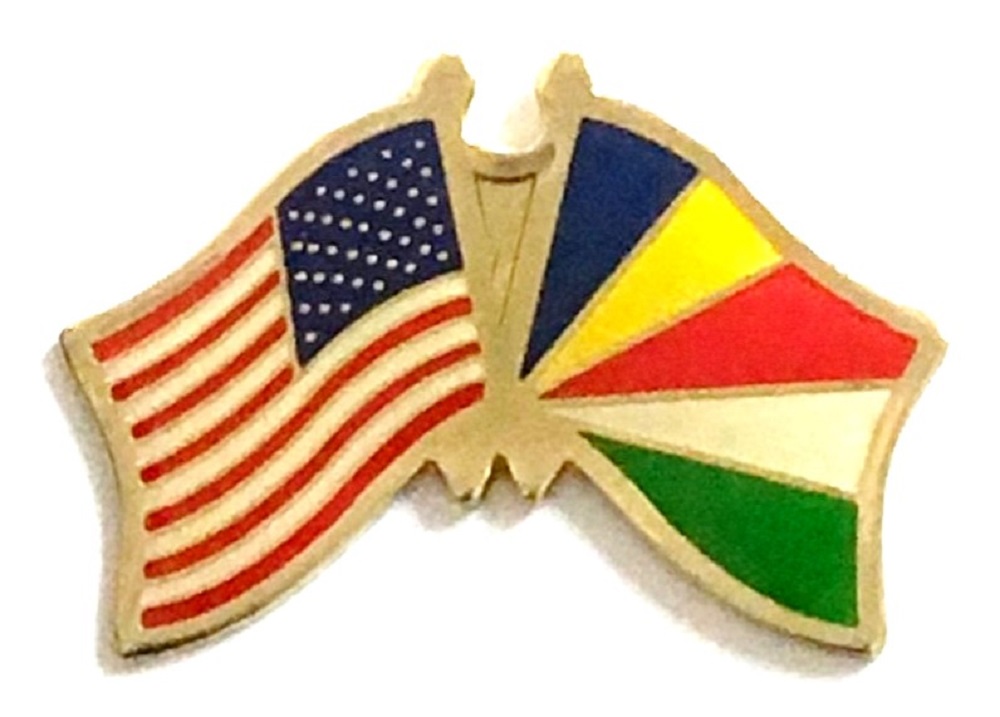 Each Seychelles flag friendship lapel pin depicts the US flag on the left along with the Seychelles flag on the right. Each pin measures approximately 1" x 3/4" or 28 mm x 18.3 mm and is the same quality as the single flag lapel pins.