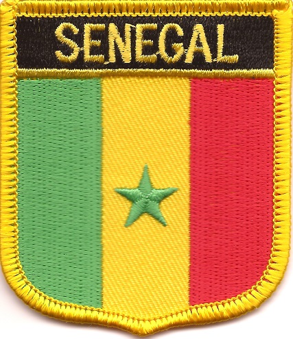 Senegal flag shield patches are fully embroidered and measure 2.25″ x 2.5″. Each patch is trimmed in gold and can be ironed or sewn on.