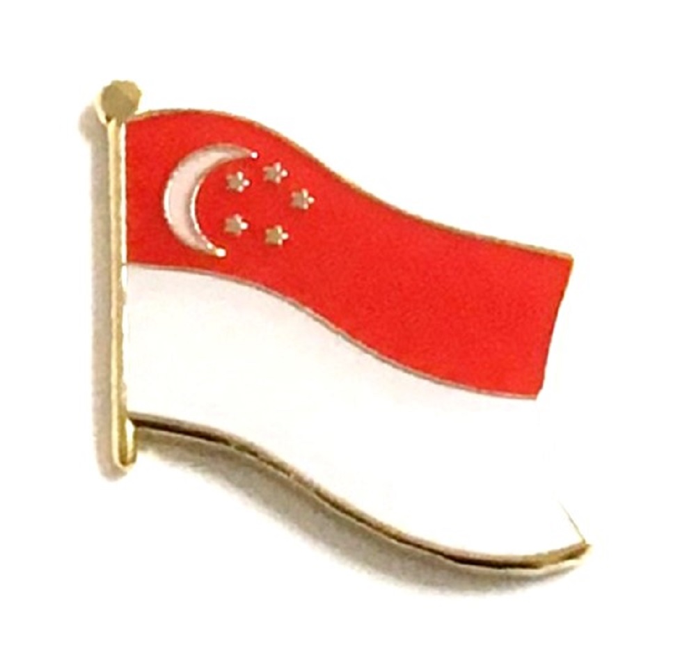 Singapore flag pin measures approximately 1 inch; x 3/4 inch; or 24 mm x 16 mm and has an all metal lacquered design with clutch pin.