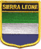 Sierra Leona flag shield patches are fully embroidered and measure 2.25″ x 2.5″. Each patch is trimmed in gold and can be ironed or sewn on.