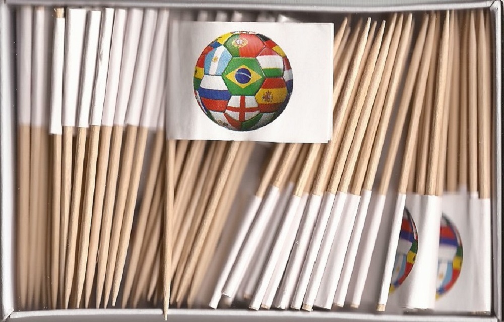 Flag toothpicks are packaged 100 to the box. Each box is sealed with a cellophane wrapper. Flag designs measure 1″x1.5″ and are attached to a standard size wooden 2.5″ toothpick.