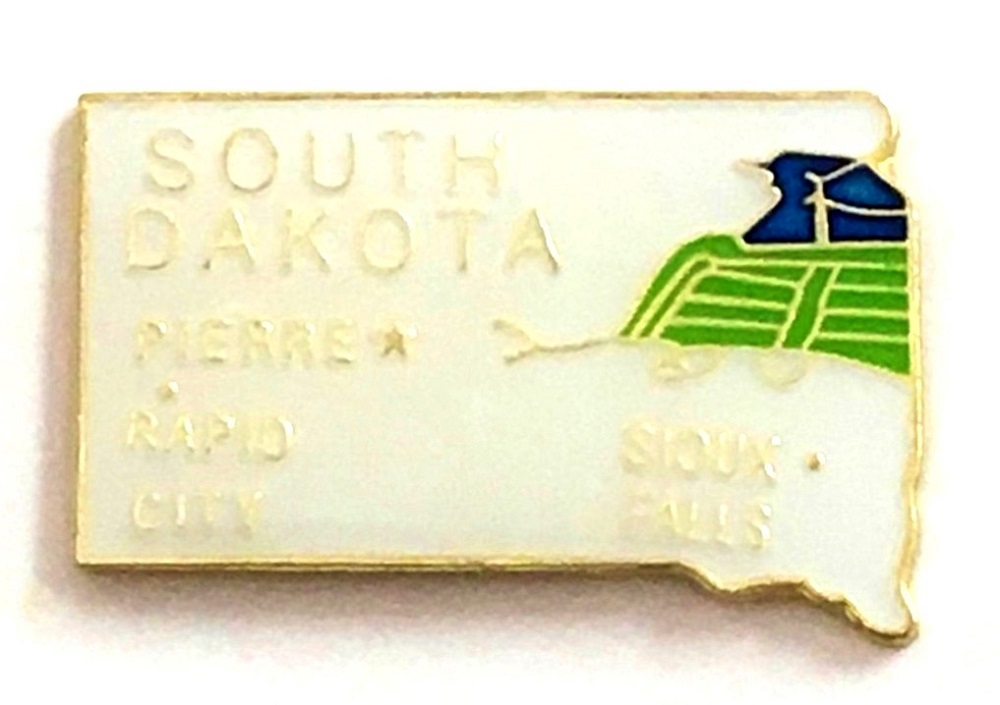 South Dakota map lapel pins are shaped like the map design of the State. Each South Dakota map pin measures approximately 5/8" x 5/8" and has an all metal lacquered design with clutch pin