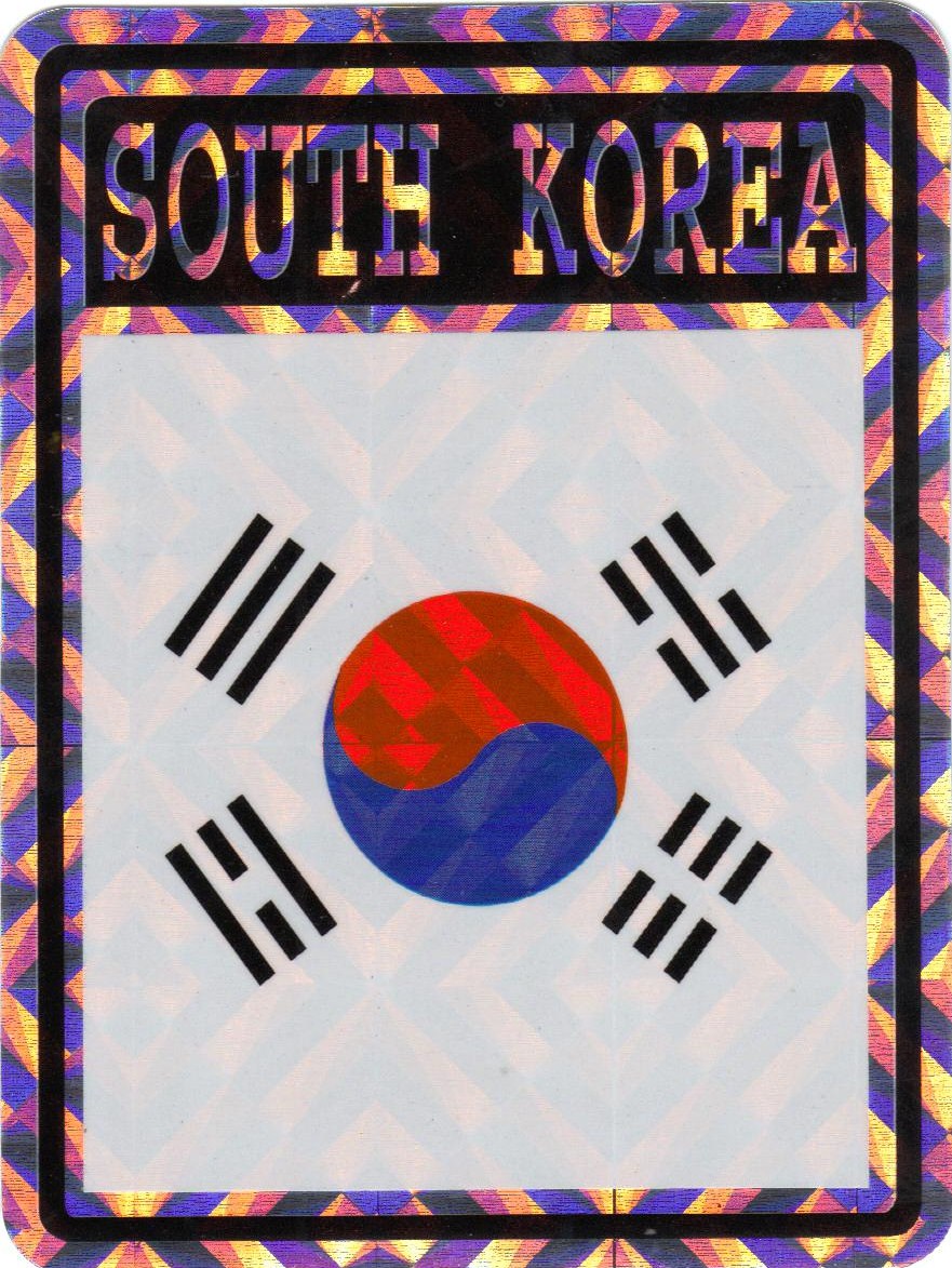 South Korea prismatic reflective decal stickers are made of waterproof vinyl. Decals measure 3"x4" and can be used outdoors in all weather. Great for attaching to your car, truck or boat. Decorate your home or automobile and show your South Korean pride.
