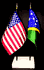 Elevate your workspace with our Solomon Islands and American miniature flag desk set! These silk-like rayon flags, measuring 4"x6", are attached to a 10" black plastic staff and finished with a gold spear top. Perfect for office, classroom, or table decor. Each set comes with a 4" long white flag stand for added display options.