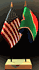 Elevate your workspace with our South Africa and American miniature flag desk set! These silk-like rayon flags, measuring 4"x6", are attached to a 10" black plastic staff and finished with a gold spear top. Perfect for office, classroom, or table decor. Each set comes with a 4" long white flag stand for added display options.