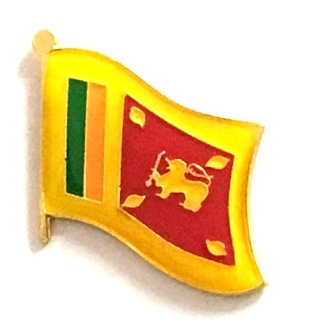 Sri Lanka flag pin measures approximately 1 inch; x 3/4 inch; or 24 mm x 16 mm and has an all metal lacquered design with clutch pin.