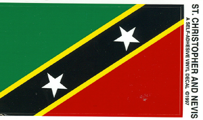 Special closeout sale. Buy 25 or more St. Christopher and Nevis vinyl waterproof flag decals and the price is only 40 cents each.