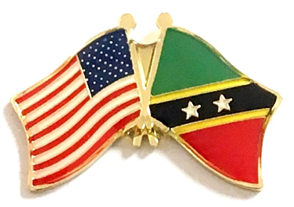 Each St. Kitts & Nevis flag friendship lapel pin depicts the US flag on the left along with the St. Kitts & Nevis flag on the right. Each pin measures approximately 1" x 3/4" or 28 mm x 18.3 mm and is the same quality as the single flag lapel pins.