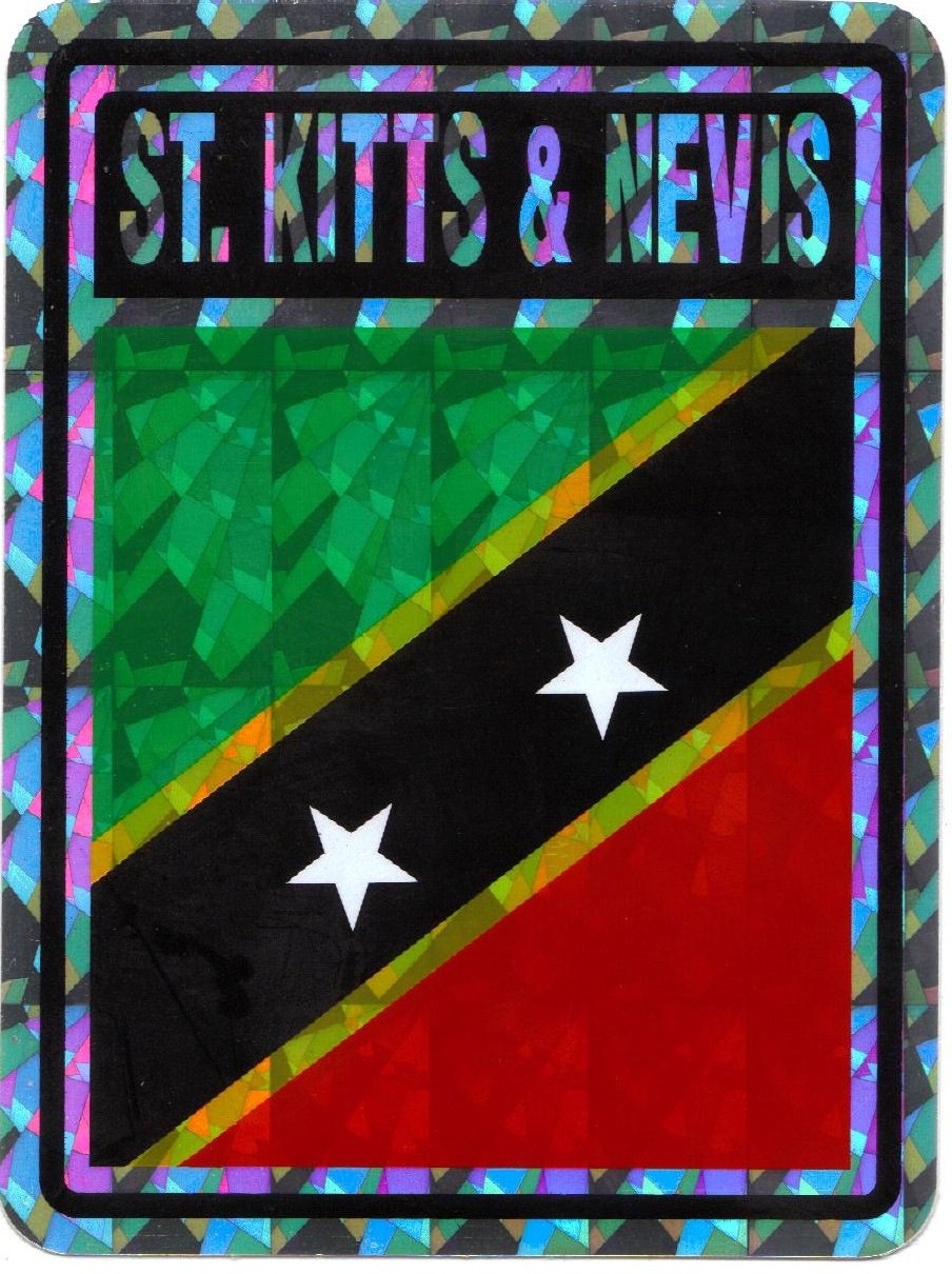 St. Kitts & Nevis prismatic reflective decal stickers are made of waterproof vinyl. Decals measure 3"x4" and can be used outdoors in all weather. Great for attaching to your car, truck or boat. Decorate your home or automobile and show your Kittian and Nevisian pride.