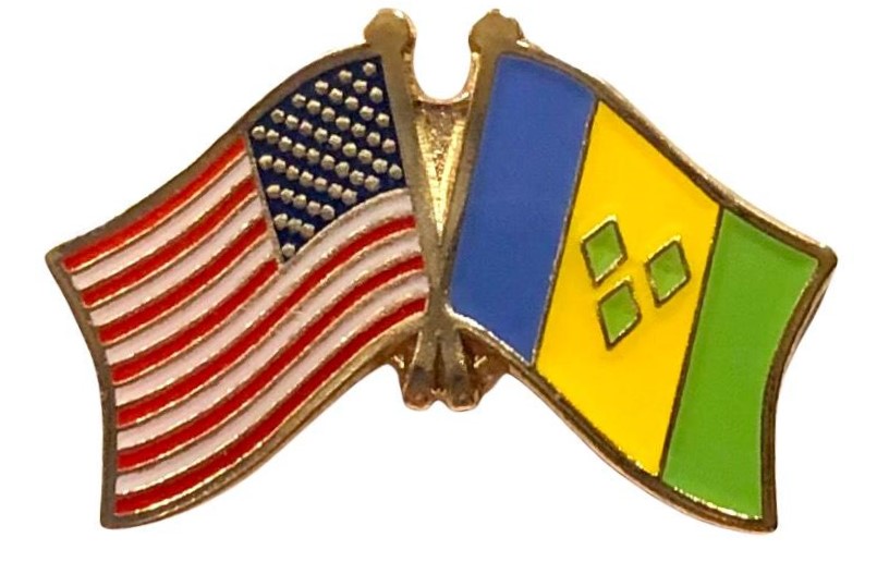 Each St. Vincent & Grenadines flag friendship lapel pin depicts the US flag on the left along with the St. Vincent & Grenadines flag on the right. Each pin measures approximately 1" x 3/4" or 28 mm x 18.3 mm and is the same quality as the single flag lapel pins.