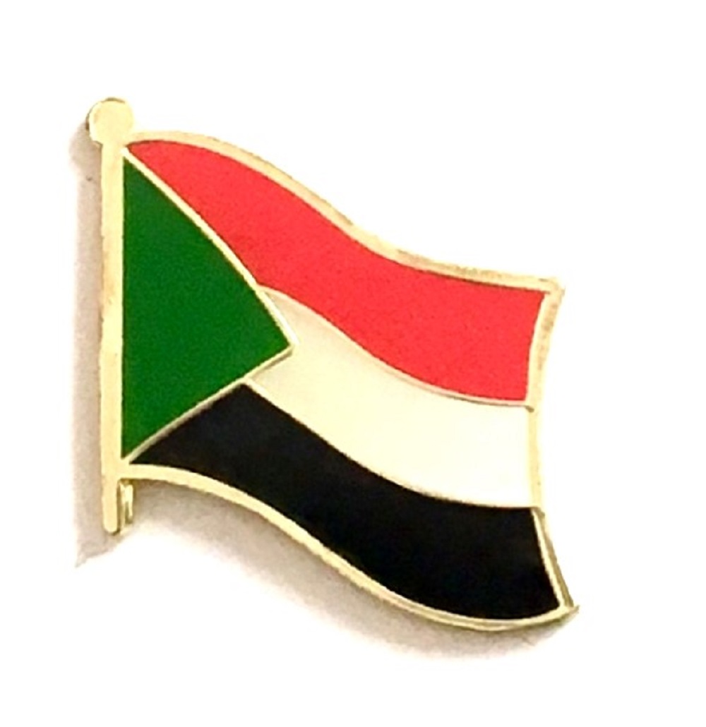 Sudan flag pin measures approximately 1 inch; x 3/4 inch; or 24 mm x 16 mm and has an all metal lacquered design with clutch pin.