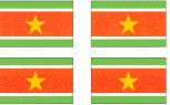 Surinam flag stickers are printed 50 to the sheet. Each flag sticker measures 1" x 1.5" and is self adhesive.
