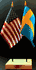 Elevate your workspace with our Sweden and American miniature flag desk set! These silk-like rayon flags, measuring 4"x6", are attached to a 10" black plastic staff and finished with a gold spear top. Perfect for office, classroom, or table decor. Each set comes with a 4" long white flag stand for added display options.