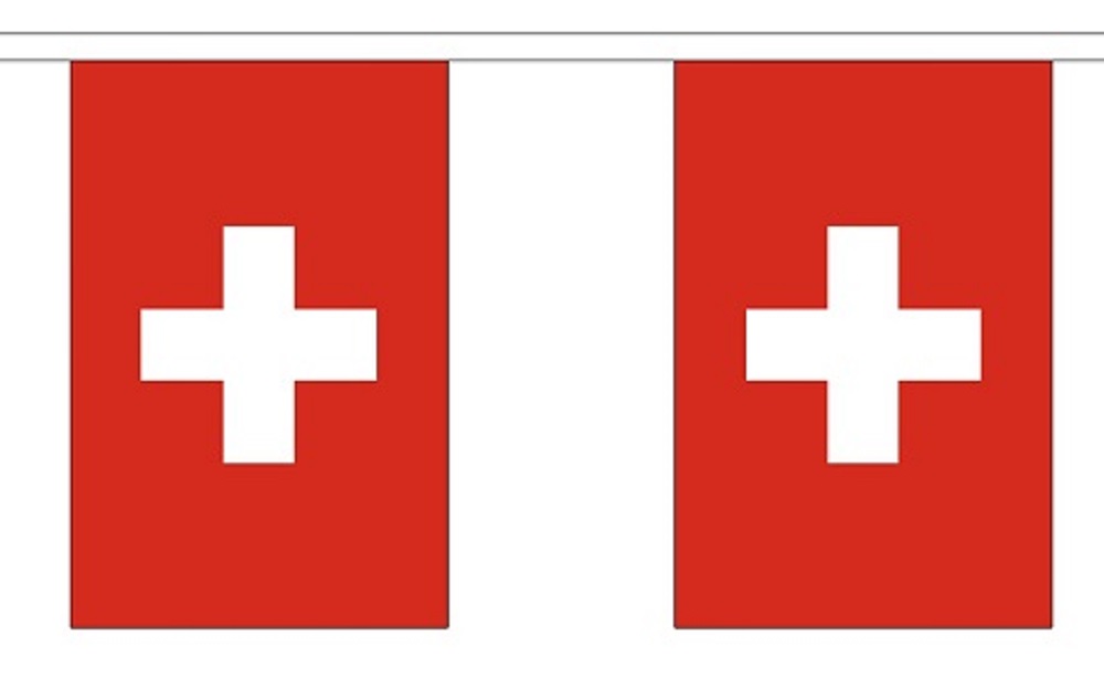 Swiss 10′ string flag bunting comes with 10 6″x9″ polyester flags. Several 10′ sections can be tied together for a longer length to fit the size that you need in the space available.