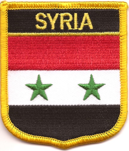 Syrian flag shield patches are fully embroidered and measure 2.25″ x 2.5″. Each patch is trimmed in gold and can be ironed or sewn on.