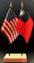Elevate your workspace with our Taiwan and American miniature flag desk set! These silk-like rayon flags, measuring 4"x6", are attached to a 10" black plastic staff and finished with a gold spear top. Perfect for office, classroom, or table decor. Each set comes with a 4" long white flag stand for added display options.