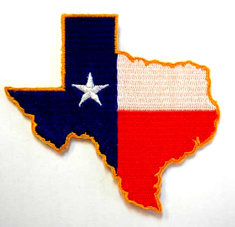 This Texas Outline Flag patch measures 3.5" x 3.0", is fully embroidered and trimmed in gold.