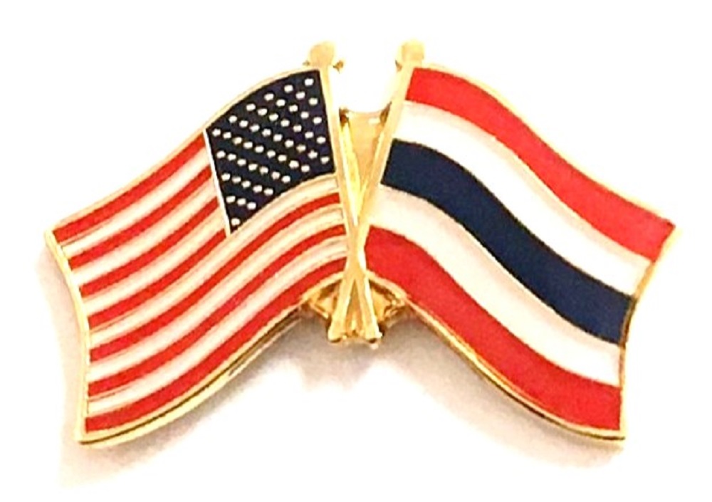 Each Thailand flag friendship lapel pin depicts the US flag on the left along with the Thailand flag on the right. Each pin measures approximately 1" x 3/4" or 28 mm x 18.3 mm and is the same quality as the single flag lapel pins.
