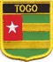 Togo flag shield patches are fully embroidered and measure 2.25″ x 2.5″. Each patch is trimmed in gold and can be ironed or sewn on.