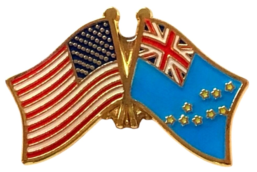 Each Tuvalu flag friendship lapel pin depicts the US flag on the left along with the Tuvalu flag on the right. Each pin measures approximately 1" x 3/4" or 28 mm x 18.3 mm and is the same quality as the single flag lapel pins.